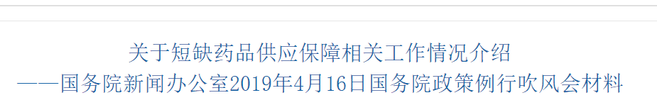 4月16日,國務院《關于短缺藥品供應保障相關工作情況介紹》宣布醫(yī)院回款要及時、主動。