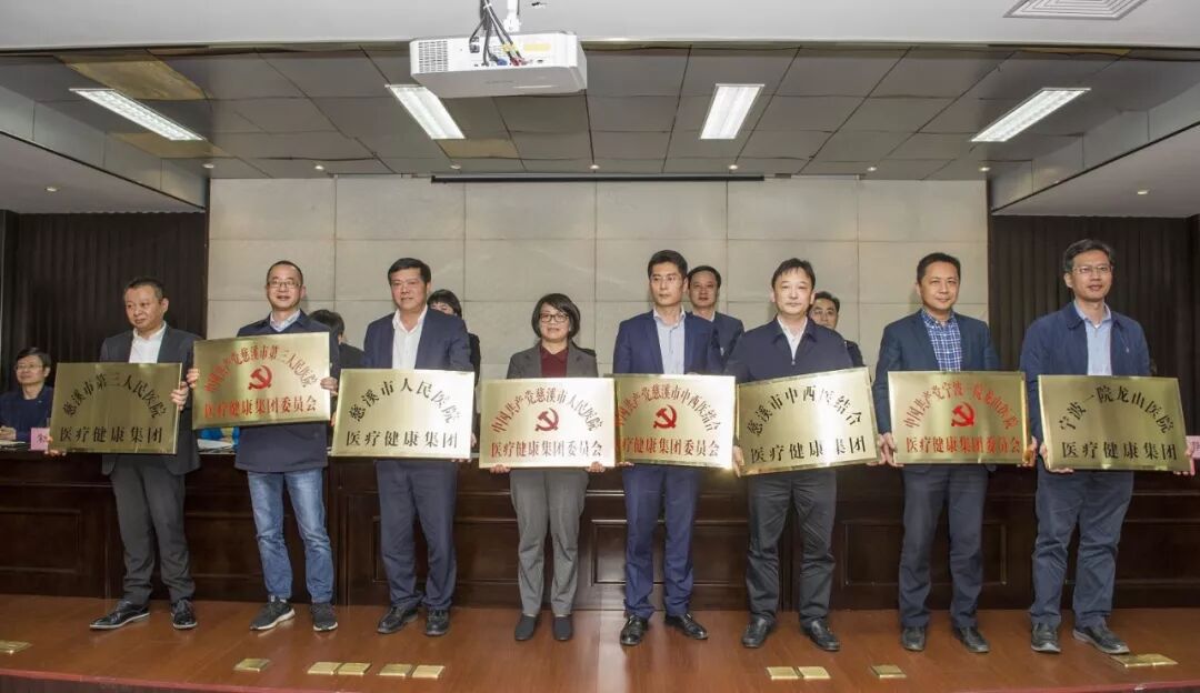 慈溪市人民醫(yī)院醫(yī)療健康集團(tuán)、慈溪市中西醫(yī)結(jié)合醫(yī)療健康集團(tuán)、慈溪市第三人民醫(yī)院醫(yī)療健康集團(tuán)、寧波一院龍山醫(yī)院醫(yī)療健康集團(tuán)四大醫(yī)療健康集團(tuán)的黨政主要負(fù)責(zé)人上臺接牌