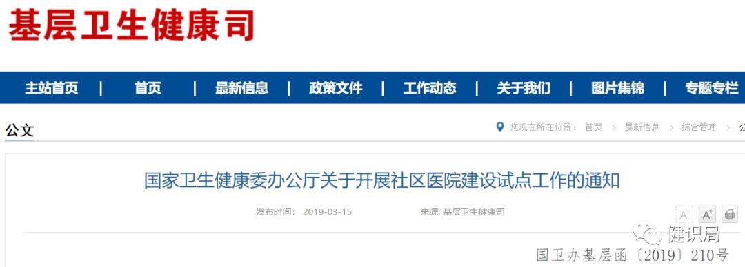 近日(3月15日),國家衛(wèi)健委辦公廳發(fā)布通知稱,2019年將在河北等20個省(區(qū)、市)開展社區(qū)醫(yī)院建設(shè)試點工作。