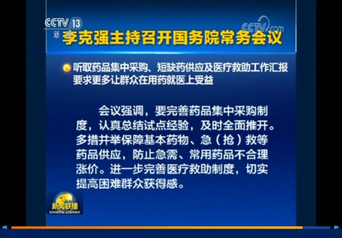 根據中國政府網消息,國務院常務會,對進一步推進國家藥品集中采購試點、短缺藥監測應對和醫療救助工作提出要求。