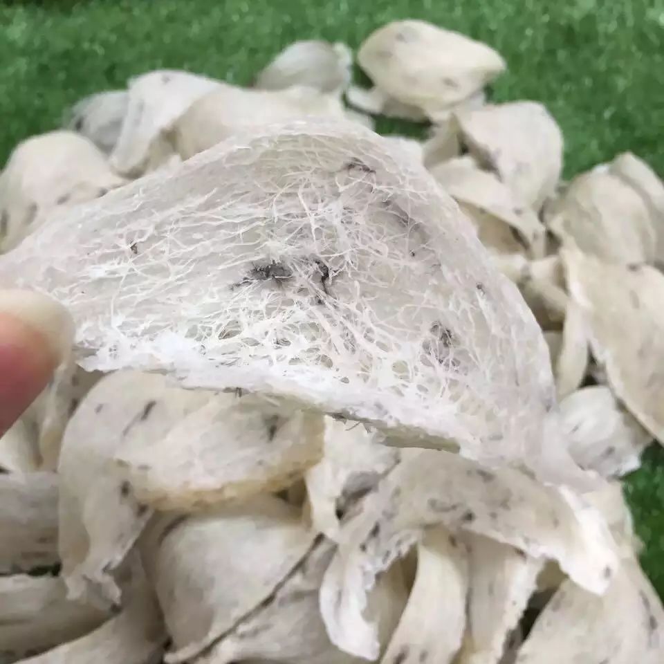 屋燕因?yàn)樽龈C時(shí)間短,其大小、質(zhì)地、色澤等與洞燕有一定區(qū)別,多個(gè)小而長(zhǎng)、肉比較薄, 裂隙多,偏白色;洞燕則個(gè)略大而圓,肉質(zhì)厚,質(zhì)地致密,燕角根帶有紅色。